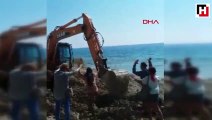Bozcaada'da sahilde kepçeyle çalışmaya tepki