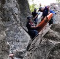 Kayalıkların arasından sedye ile çıkarıldı