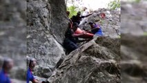 Düşen şahıs için halat yardımıyla sedye sistemi kuruldu. AFAD ve jandarma ekipleri tarafından sedyeye alınan şahıs daha sonra el birliği ile yukarı çekildi. Yukarı çekilen turiste ilk müdahale olay yerine yapıldı. Ayağında kırık ve baş ile bel kısmından yaralanma olan şahıs daha sonra hastaneye kaldırılarak tedavi altına alındı. Haber