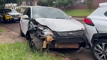 Carro atinge dois veículos estacionados no Centro de Cascavel e mulher de 58 anos fica ferida