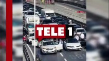 Trafiğin ortasında araçlarından inip kavgaya tutuştular