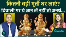 दिवाली (Diwali 2019) पर माता लक्ष्मी के साथ भगवान गणेश की भी पूजा का महत्व है. धन की देवी की पूजा जहां हम समृद्धि के लिए करते हैं वहीं भगवान गणेश की पूजा सभी विघ्नों को हरने के लिए करते हैं. बाजार में भगवान गणेश की विभिन्न मुद्राओं वाली प्रतिमा मिलती हैं. इनमें बैठी हुई, लेटी हुई और खड़ी मुद्रा में अधिकतर प्रतिमाएं मिलती हैं. ऐसे में आपको यह जान लेना चाहिए कि आपके लिए कौन सी मुद्रा वाली मूर्ति लेनी चाहिए घर में किस ओर स्थापित करनी चाहिए..