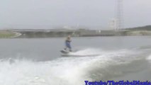 Woman Trying to Launch Kid on Water Trampoline Falls Into Water