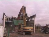 Vidéo de la pelle Caterpillar 365Bl de l'entreprise FERRARI Démolition sur la démolition de la tour Zorn R+10 à Wittelsheim en version UHD et à la mine Amélie en version rétro.