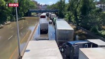 Un peu plus loin, surpris pendant la nuit, cet homme constate les dégâts dans sa cour. Et dans son garage, le niveau de l’eau est monté jusqu’à un mètre.