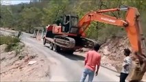 Déchargement raté d'un Tractopelle du camion...