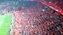 Kongre Müzesi bahçesinde toplanan yaklaşık 400 kişilik taraftar grupları sloganlar atarak İstasyon Caddesi'nden stadyuma hareket etti. Ellerindeki meşalelerle coşkulu bir şekilde yürüyen taraftarlara yoldan geçen vatandaşlarda eşlik etmeyi ihmal etmedi.