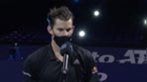 Dominic Thiem upset Roger Federer with a straight sets victory on the opening night of the ATP Finals in London.