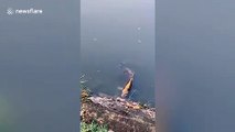 This was a video time recorded by a tourist visiting a lake in Kumming, China, when he spotted a fish with features very similar to those of a human being.The marks on fish resemble the eyes, nose and mouth of a human being.