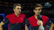 Nicolas Mahut et Pierre-Hugues Herbert sont intouchables à Londres. Après avoir réussi un joli 3/3 en poule, la paire Tricolore a confirmé ce samedi en demi-finale en venant à bout du duo Lucas Kubot / Marcelo Melo, tête de série numéro 2. Un succès 6-3, 7-6(4) et les voilà en finale sans avoir perdu le moindre set dans ce Masters. Après un sacre à Paris-Bercy, les deux hommes ont l'occasion de remporter leur premier titre à Londres. Finalistes malheureux l'an passé, ils vont tenter de conjurer le mauvais sort. Ce sera face à une paire de l'hémisphère sud: Michael Venus (Nouvelle-Zélande) et Raven Klaasen (Afrique du Sud).