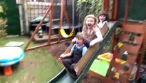 Nós vestidos de Moana personagem da Disney - Brincando na Gangorra no nosso quintal de Casa com Sophia, Isabella e Alice