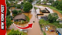 A drone filmer in north England caught the substantial yet eerie flooding that had spilt over from a reservoir in Northamptonshire, central England.