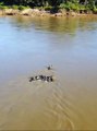 Crocodile attack African wild dogs