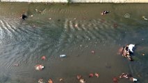 Bunun üzerine harekete geçen Akçakoca Belediyesi, telef olan tavukları dereden çıkarttı.