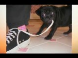Pug Struggles to Grab Treat Kept on Table's Center