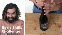 We brought 50 people together and asked each of them to pop a champagne bottle open for us. Unsurprisingly, the results ran from perfectly smooth to explosively unpredictable. Watch and see just how complicated folks can make taking one thing out of another thing on this episode of Basic Skills Challenge.