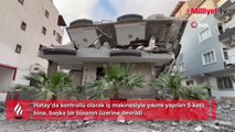 Yıkımı gerçekleştirilen 6 katlı bina yandaki az hasarlı binanın üzerine devrildi