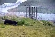 El coyote se acercó al lugar muy confiando, pero se encontró enfrente con un minino con ínfulas de boxeador, que le lanza numerosos ‘puñetazos’ y obligándolo a retirarse.