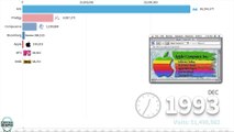 Timeline of the most visited websites on the Internet from 1996 to 2019. Worldwide statistics based on websites traffic measured by monthly visits.
