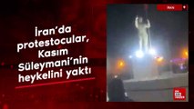 İran'da protestocular, Kasım Süleymani'nin heykelini yaktı