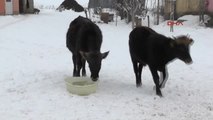 Hayvanlarının su ihtiyacını çeşme ve derelerden karşılayanlar, dondurucu soğuk nedeniyle zorluk çekti. Haber