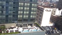 Violent wind blows water out of rooftop swimming pool in Manhattan