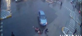 Düzce'de gece saatlerinde meydana gelen kazada yola kontrolsüz çıkan sürücüye bir başka otomobil çarptı. Çarpışmanın etkisiyle kaldırıma çıkan otomobili bayrak direği durdurdu. Kaza anı ise güvenlik kameralarına yansıdı. (İHA)