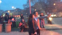 Sevgililer sağanak şekilde yağan yağmur altında müzik eşliğinde bir süre dans ettikten sonra meydandan ayrıldılar. (HK-AY-