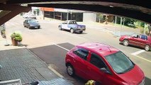 Câmera mostra colisão entre carro e moto no Bairro Neva