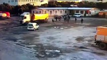 Kızgın şoför tırı mesai arkadaşlarının üzerine sürdü...Dehşet anları kamerada