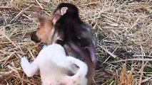 Cute Baby Monkey & Dog Playing