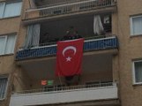 7 kardeş olduğu öğrenilen Tüzel'in babaevine, Türk bayrakları asıldı.