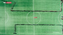 Osmaniye'nin Kadirli ilçesinde ortaokul öğrencileri, Türk Silahlı Kuvvetlerince Suriye'nin İdlip bölgesinde yürütülen Bahar Kalkanı Harekatı'na verdikleri desteği, okul bahçesinde ay yıldız koreografisi yaparak gösterdi.