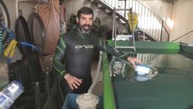 El triatleta Isidro Benavent aprovecha un contenedor como piscina para poder entrenar