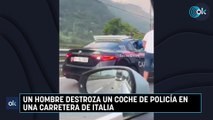 Un hombre destroza un coche de policía en una carretera de Italia