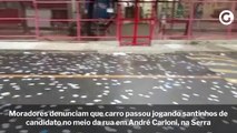 Moradores denunciam que carro passou jogando santinhos de candidato no meio da rua em André Carloni, na Serra
