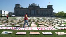 Weil Demonstrationen mit tausenden Teilnehmern wegen der Coronavirus-Pandemie nicht möglich sind, haben Umweltaktivisten der Fridays-for-Future-Bewegung die Wiese vor dem Reichstagsgebäude in Berlin mit unzähligen Protest-Plakaten ausgelegt. Die Aktion war Teil eines bundesweiten digitalen Netzstreiks für mehr Klimaschutz.