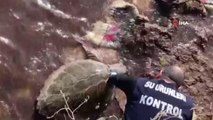 Halatlara takılan dev kaplumbağa için seferber oldular