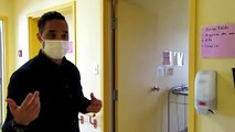 Kamel Sadedine, coordonnateur du CHSLD Champlain-Jean-Louis-Lapierre à Saint-Constant explique la différence entre la salle de la zone tiède et celle de la zone chaude.
