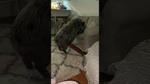 Little Girl Cuddles Up With Dog on Couch While Watching TV