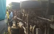 A major accident took place on Tuesday when a School bus with 40 students overturned in Uttar Pradesh's Etah, more than 10 injured.
