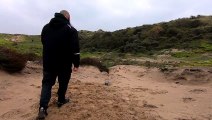 Grip hold of a natural stone with the right hand while walking around