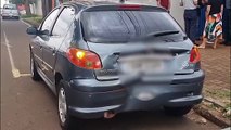 Mulher fica ferida após colisão entre carro e moto na Rua Manaus, no Cancelli