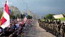 Ukrainian protesters have been filmed shouting at armed Russian soldiers to “go home”
