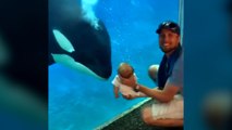 El increíble momento en que una orca ve a un bebé por primera vez