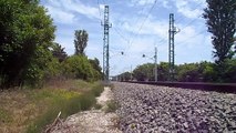 An electric locomotive SIEMENS Vectron , owned by private operator "PIMK Rail" near central railway station Plovdiv.