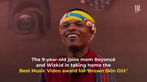 Blue Ivy Carter Wins First BET Award The BET Awards virtually celebrated its 20th anniversary on Sunday. Beyoncé and Jay-Z's daughter, Blue Ivy Carter, made the event especially memorable when she became the youngest BET award winner ever. Carter was recognized for her work on the song "Brown Skin Girl,' featured on 'The Lion King: The Gift.' Beyoncé, WizKid and Saint Jhn collaborated on the song. Beyoncé was also presented with the Humanitarian Award by Michelle Obama. She gave a speech addressing racial equality. Beyoncé, via BET Awards Beyoncé, via BET Awards