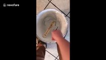 Workers at a brickmaker in Indonesia were showing off their trade by chopping up blocks of clay and baking them in their kiln in a strangely satisfying display.