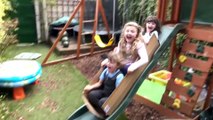 Nós vestidos de Moana personagem da Disney - Brincando na Gangorra no nosso quintal de Casa com Sophia, Isabella e Alice