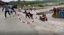 In Munsiyari area of Pithoragarh, Uttarakhand, a car was swept away by a strong current of a drain. This car fell into the water from the road. Fortunately, the car driver Deepak Ramola and passenger Bhaskar Balian were saved when local people rescuing them. There is heavy rain in Munsari area due to which all the river drains here are in spate. Watch the video.